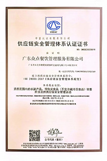 本公司已通過ISO9001、ISO22000、ISO14001、ISO18001、HACCP等認證。同時獲得